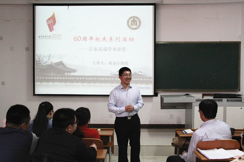 427日下午,60周年校庆系列活动之“百家学术讲堂”在日照校区开讲,原外文系1992级杰出校友,解放军外国语学院博士生导师、外语类核心期刊《解放军外国语学院学报》主编蔡金亭教授做了题为《翻译研究论文的评审》的精彩学术讲座。副校长康淑敏为蔡金亭教授颁发“名家高端学术讲堂纪念牌”,并赠予其在母校就读期间的学籍卡和成绩单复印件。翻译学院院长卢卫中主持讲座,翻译学院全体教师、研究生、部分本科生及其他学院部分教师参加了讲座。