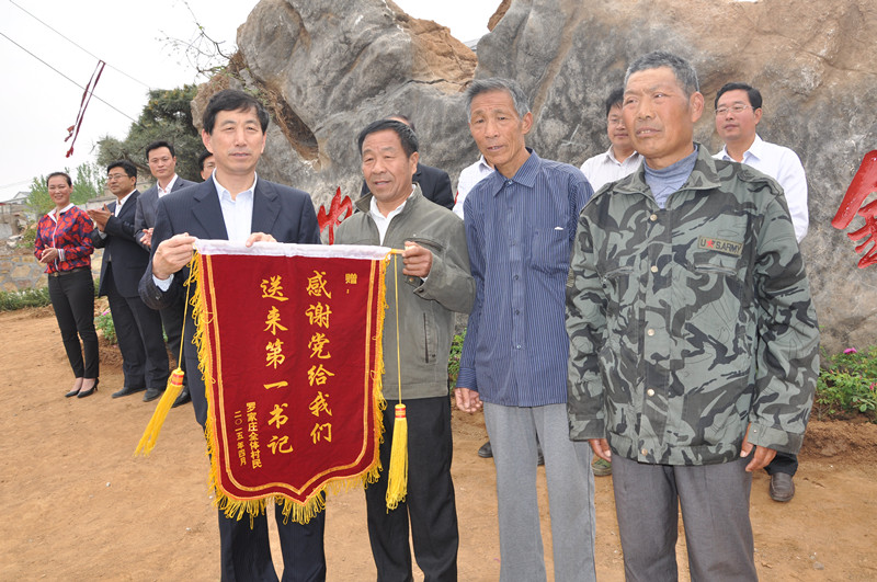 罗家庄村的变化给村民们带来了福祉,老百姓对我校“第一书记”赵坤的工作给予高度认可。为表达全村乡亲对“第一书记”的感激之情,他们将一面锦旗送到了我校党委书记荆兆勋的手上,感谢学校为罗家庄村送去了“第一书记”,感谢学校三年来为罗家庄村脱贫致富所做出的贡献。