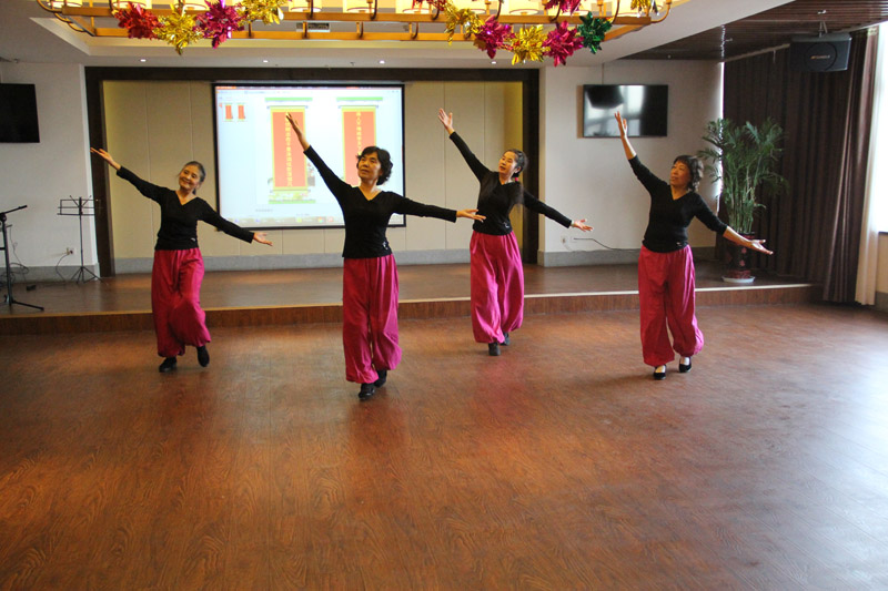 茶话会上,离退休教职工们表演了精彩的文艺节目。大合唱《美丽草原我的家》、《绒花》赢得阵阵掌声;手风琴独奏更是博得了观众的喝彩;广场舞《大山走出的孩子》、《草原的月亮》展现了退休教职工们昂扬向上的生活状态;男声小合唱《夕阳红》、《东方红》大表演者中有三位八十多岁的老干部,高亢的歌声展现了他们的精气神;马东骅与孙金娣老师的京剧表演将茶话会的气氛推向高潮。最后,茶话会在《烛光里的妈妈》悠扬的旋律中结束。