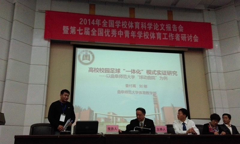 11月7-9日,由中国体育科学学会学校体育分会主办的2014年全国学校体育科学论文报告会暨第七届全国优秀中青年学校体育工作者研讨会在武汉体育学院举办,我校体育教学部教师姜付高、刘刚提交的《高校校园足球“一体化”模式实证研究---以米兰网“球动曲院”为例》一文受邀做大会专题报告。报告以我校校园足球发展为例证,用先进的体育理念、生动的图片、翔实的数据、丰富的信息诠释了我校校园足球的发展理念、发展现况和发展模式,为切实推动高校校园体育活动,提供理论支持和实践指导。报告受到参会者的认可,获得论文一等奖。
