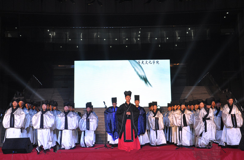 副校长康淑敏,学生工作处、校团委、济宁预备役师二团政治处负责人以及各学院党总支副书记、新生辅导员老师,与2014级全体新生一起观看了晚会。