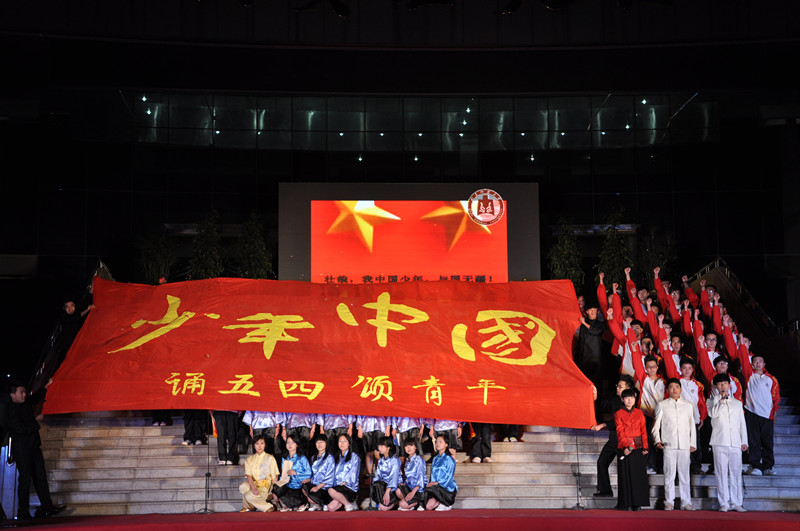 5月4日晚,校团委和学生工作处主办的“五月的鲜花 无悔的青春”纪念五四运动95周年青春诗会激情上演,3000余名大学生欢聚一堂,用诗歌庆祝属于自己的节日。党委书记荆兆勋、校长傅永聚、党委副书记孙文亮,学校办公室、团委、学生工作处和各学院负责人出席了晚会。