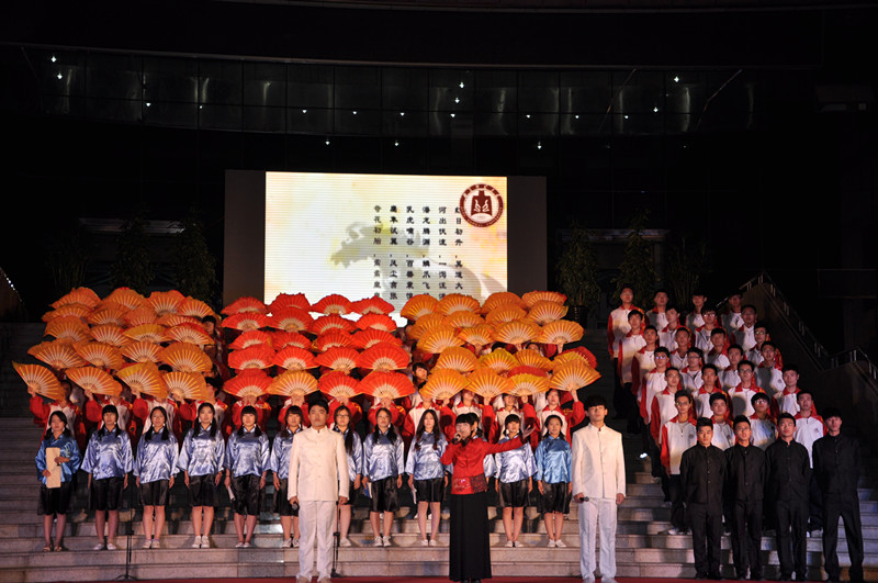 诗会分“忆五四峥嵘岁月”、“扬青春风华正茂”、“展今朝继往开来”等三大篇章,为现场数千学子献上了一席五四精神盛宴。整场诗会掌声如潮,喝彩不断。11个学院的方队依次登场,以各具创意的表演生动地阐释了五四之魂、展示了青春之志,表达了为实现中华民族伟大复兴而努力奋斗的豪迈之情。文学院的话剧诗朗诵《中国有梦,青春无悔》,用独特新颖的演绎形式,触动人心的对话,向现场的青年学子阐释了青春的含义,激励每一位青年用无悔的青春,书写风华正茂;书法学院的诗朗诵《中国人,不跪的人》热情高涨,满怀希望,而且现场书写了“爱我中华,走向复兴”,振奋人心古筝三重奏《战台风》余音袅袅,荡气回肠,成为了诗会的一大亮点。