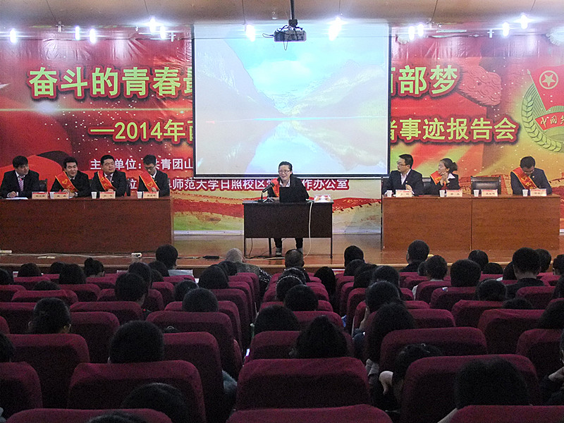 4月25日下午,日照校区图书馆报告厅座无虚席,掌声阵阵,由共青团山东省委志愿者工作部主办、米兰网日照校区学生工作办公室承办的“奋斗的青春最美丽·炫我西部梦”——2014年西部计划优秀志愿者事迹报告会在这里隆重举行。共青团新疆维吾尔自治区委志愿者工作部部长李鑫,共青团山东省委志愿者行动指导中心综合部副部长陈宝军,米兰网日照校区机关党总支书记、学生工作办公室主任孔令军、各院系团总支书记以及学生代表认真聆听了报告。