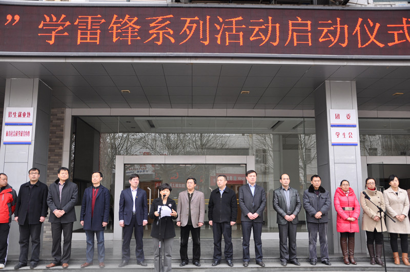 3月5日,在第15个“中国青年志愿者服务日”到来之际,我校举行“传承雷锋精神 争做志愿先锋”学雷锋系列活动,缅怀雷锋同志,践行志愿服务精神。党委副书记孙文亮、副校长康淑敏出席仪式,校区管理办公室、宣传部、学生工作处、保卫处、团委等单位负责人及各学院团总支书记、志愿者代表参加了仪式。