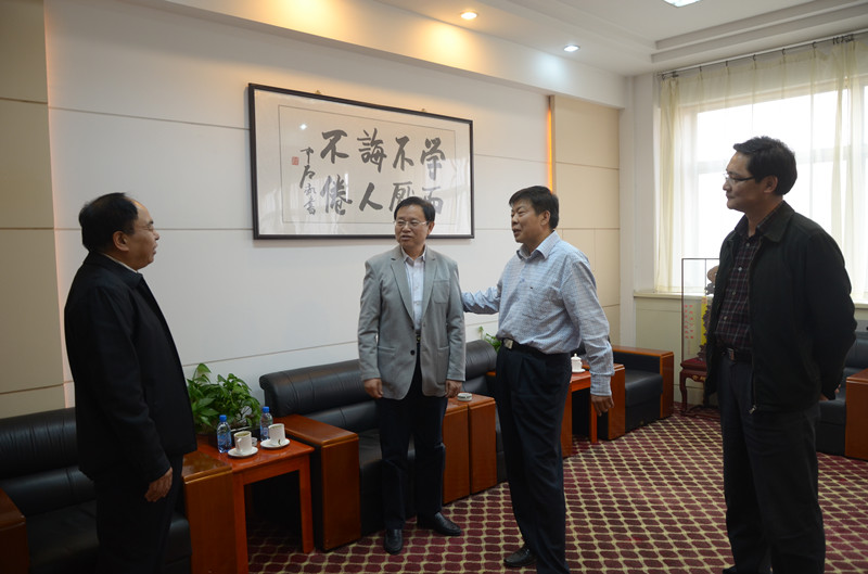 10月22日下午,青岛大学党委书记夏临华来访我校。党委书记荆兆勋、校长傅永聚、党委副书记刘新生与客人就师资建设、干部队伍建设、人才培养、特色办学、科学研究和校园文化建设等方面进行了深入细致的探讨交流。学校办公室负责人陪同座谈。
