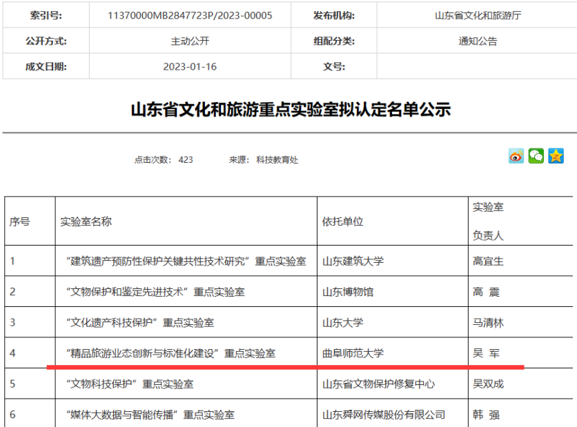 据悉,本次全省仅有15个文化和旅游重点实验室获批。曲阜师大“精品旅游业态创新与标准化建设”实验室是唯一和旅游行业标准化建设有关的的实验室,符合国家最新颁布的《质量强国建设纲要》要求。此次曲阜师大获批省重点实验室,将为全面贯彻落实党的二十大精神和学校第九次党代会精神,进一步服务和聚焦国家、山东省文旅行业重大战略需求奠定基础。