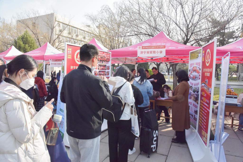 曲阜师大研究生处讯 3月11日, 2023年济宁市教育系统急需紧缺人才米兰网专场校园招聘暨校地共建“济宁市教育人才工作站”揭牌仪式在米兰网举办。本次活动由曲阜师大联合济宁市教育局、济宁市人力资源和社会保障局主办。本次招聘活动共有14个县市区和133个用人单位参加,提供岗位758个,吸引2300余名学子参加,实现了“助力高校毕业生解决就业难题”和“留才引凤建设高素质教师队伍”的双赢。