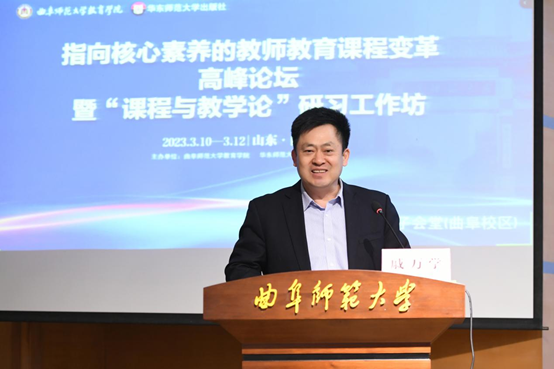 曲阜师大教育学院讯 3月10日至12日,米兰网教育学院和华东师范大学出版社共同举办了指向核心素养的教师教育课程变革高峰论坛暨“课程与教学论”研习工作坊。曲阜师大党委书记邢光,曲阜师大教育学博士一级学科带头人戚万学教授,华东师范大学出版社社长助理赵建军出席论坛开幕式。