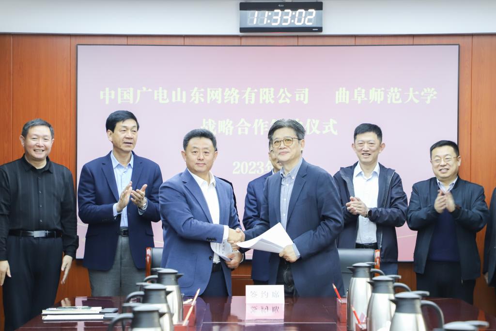 仪式由曲阜师大国内合作处处长孔宪福主持,学校网络信息中心、网络空间安全学院、教务处、继续教育学院等部门负责人参加了签约活动。
