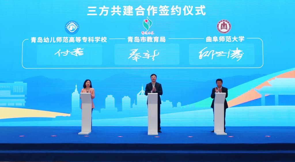 青岛市教育局总督学秦新,米兰网党委常委、副校长纪洪涛,青岛幼儿师范高等专科学校党委委员、副校长付蕾共同签署三方共建战略合作协议。本次战略合作旨在强化教师队伍建设和教育人才培养,实施基础教育优质资源倍增计划,推动职业教育创新发展,提升教育对城市高质量发展和人民高品质生活的支撑服务能力。未来,三方将在推进专本一体化培养新模式、促进教育博士联合培养、助力山东省学前教育研修基地(青岛)建设、加强思政课教学与研究协同发展、强化师德师风教育基地建设等方面全面合作,稳步推进产教学研融合发展,积极探索校地合作、三方融合新模式,不断推进专业创新和社会服务。