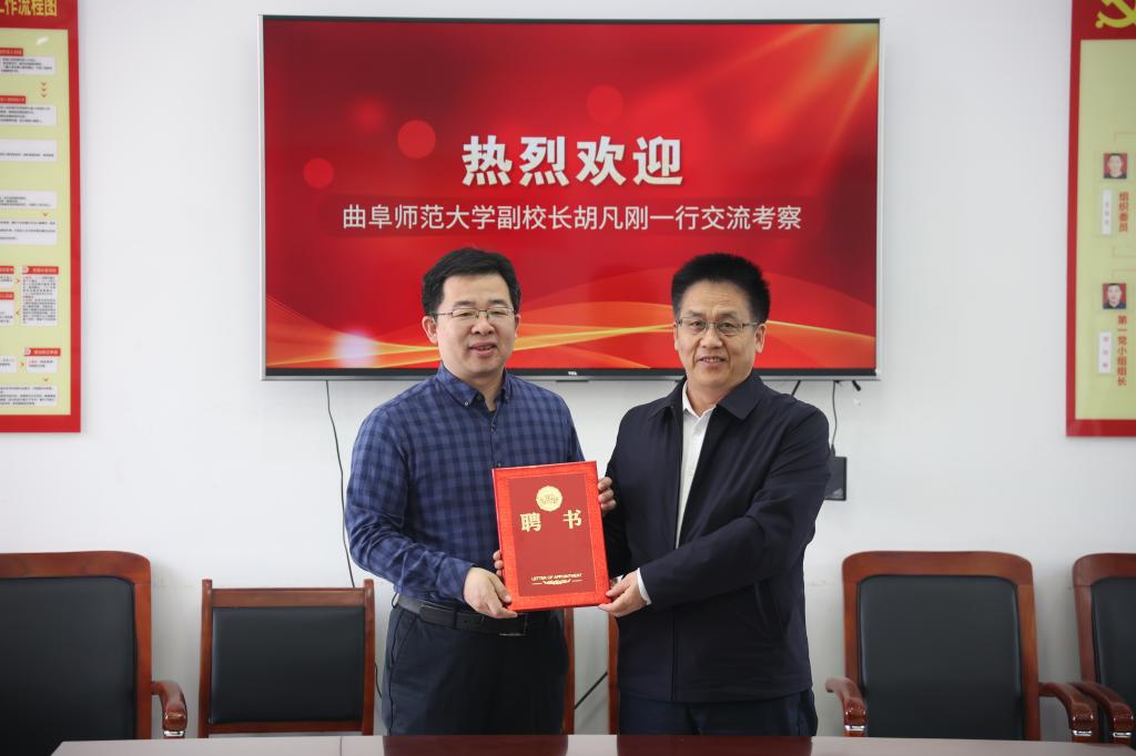 调研期间,胡凡刚为大众日报日照记者站站长吴宝书、齐鲁晚报日照站站长张宏磊颁发了兼职实践导师聘书。