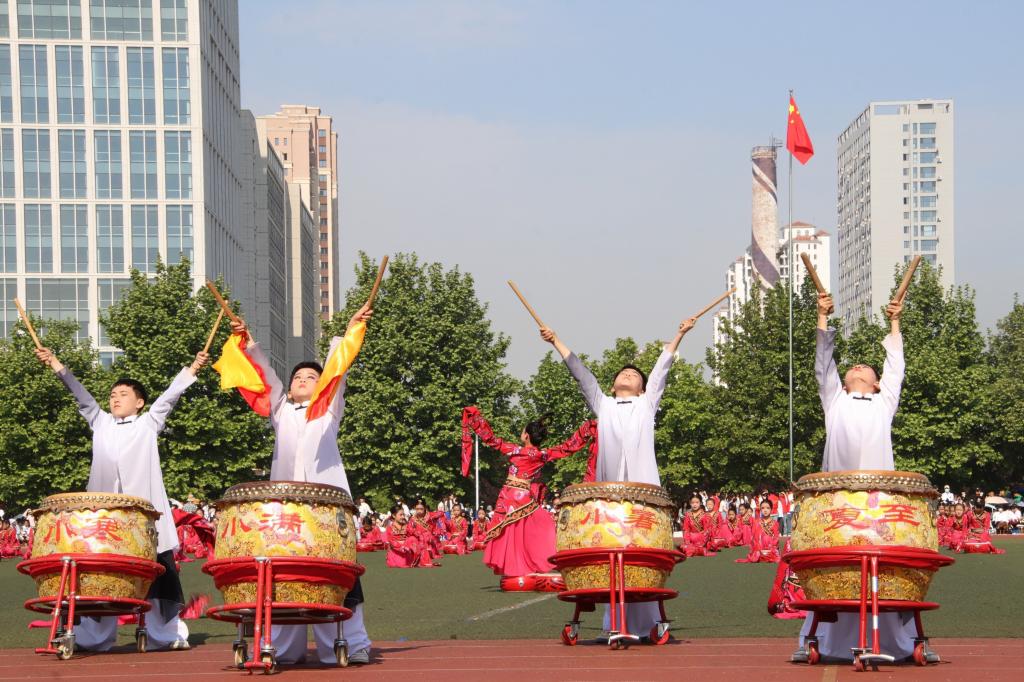 迎着朝阳,正步铿锵,国旗护卫队迈着坚定的步伐进入会场,紧随其后的是由工学院组成的彩旗方队、志愿者方队、由师生共同组成的裁判员方队以及12个学院方队,整齐划一的队伍,掷地有声的口号充分展示了曲园学子积极向上、蓬勃昂扬的精神风貌。入场式结束后,伴随着庄严的国歌声,全体师生起立,奏唱国歌。
