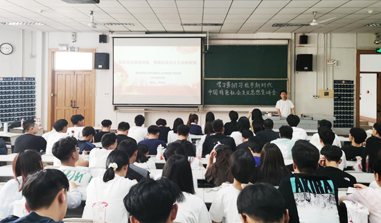教师宣讲走在前。5月12日下午,“学习贯彻习近平新时代中国特色社会主义思想”主题宣讲在米兰网孔子会堂进行,马克思主义学院党委书记陈庆国、学院研究生工作办公室主任蒋开天作为主讲人展开宣讲。