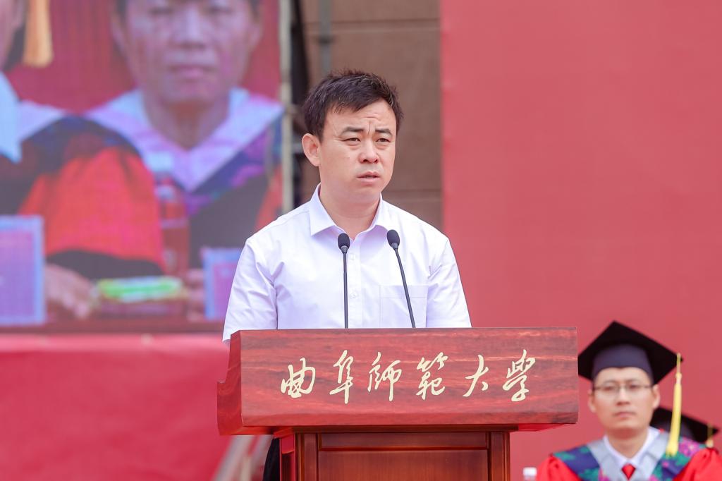 “今年开始,我们将为曲阜师大新生赠票游‘三孔’,驻曲高校历届毕业校友都可免费参观‘三孔’,我们以城市之名致敬青春,诚邀广大校友常回家看看。”曲阜市委书记李丽出席毕业典礼时祝福同学们带着圣城凝结的深情厚谊扬起顺航之帆,她期待毕业学子们再成圆梦曲阜的“奋斗者”,她表示:“只要有利于曲阜师大做大做强的事,只要有利于曲阜师大师生的事,我们都将不遗余力、全力支持!”