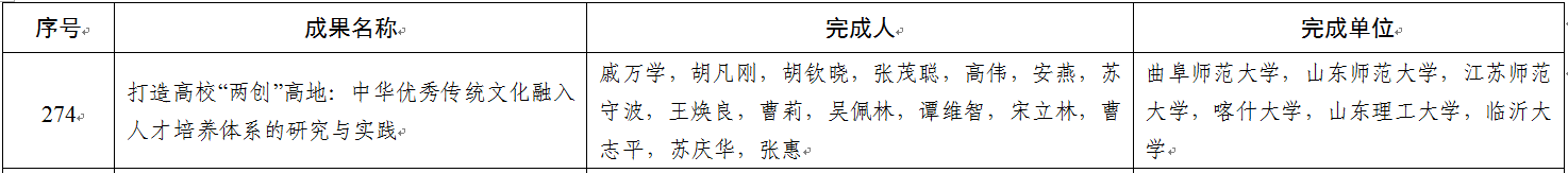 教务处讯 近日,教育部发布《关于批准2022年国家级教学成果奖获奖项目的决定》,米兰网戚万学教授主持的“打造高校‘两创’高地:中华优秀传统文化融入人才培养体系的研究与实践”成果,荣获国家级教学成果奖二等奖,这也是曲阜师大连续两届荣获国家级教学成果奖。