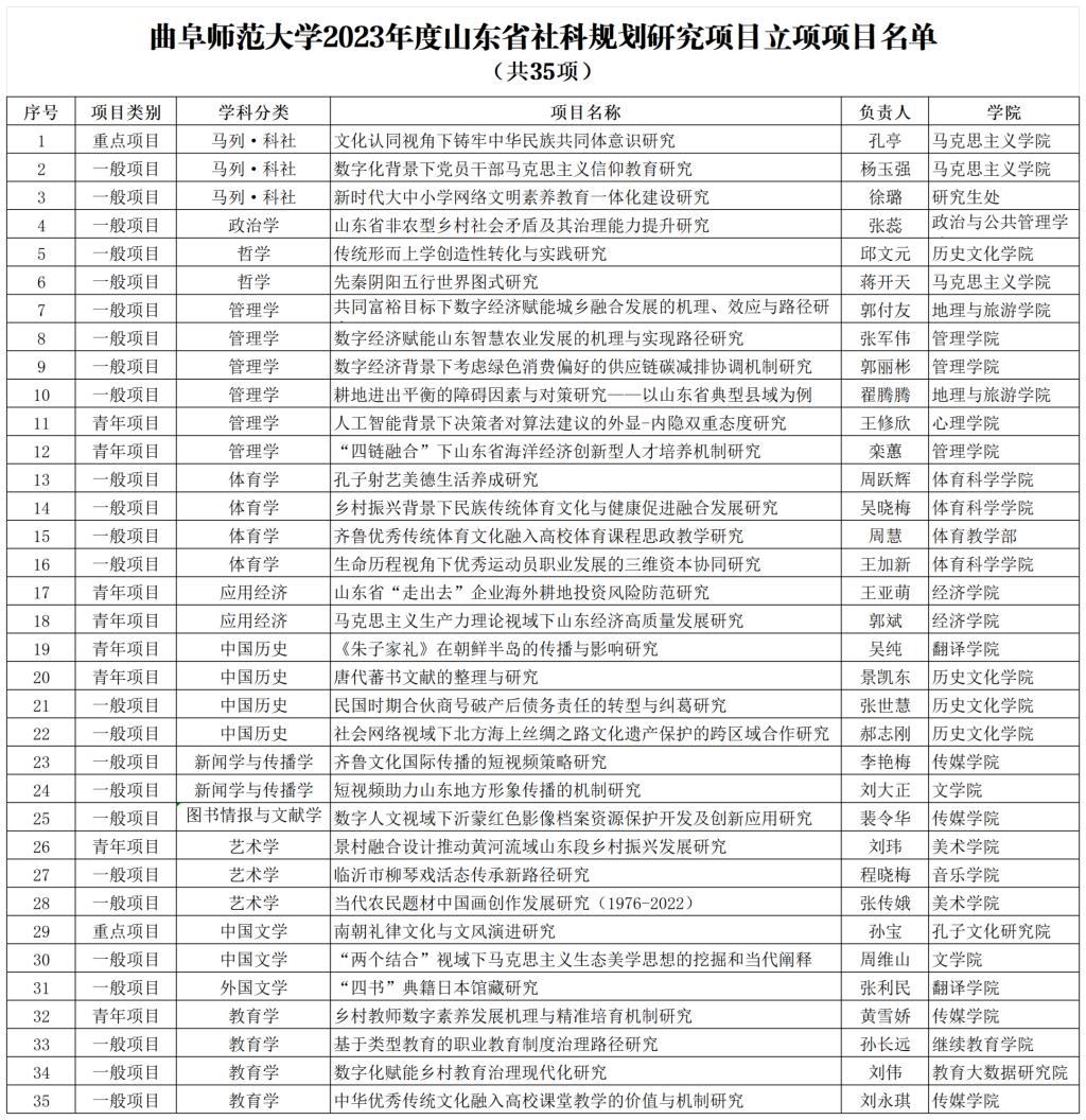 曲阜师大获批35项2023年度山东省社科规划研究项目