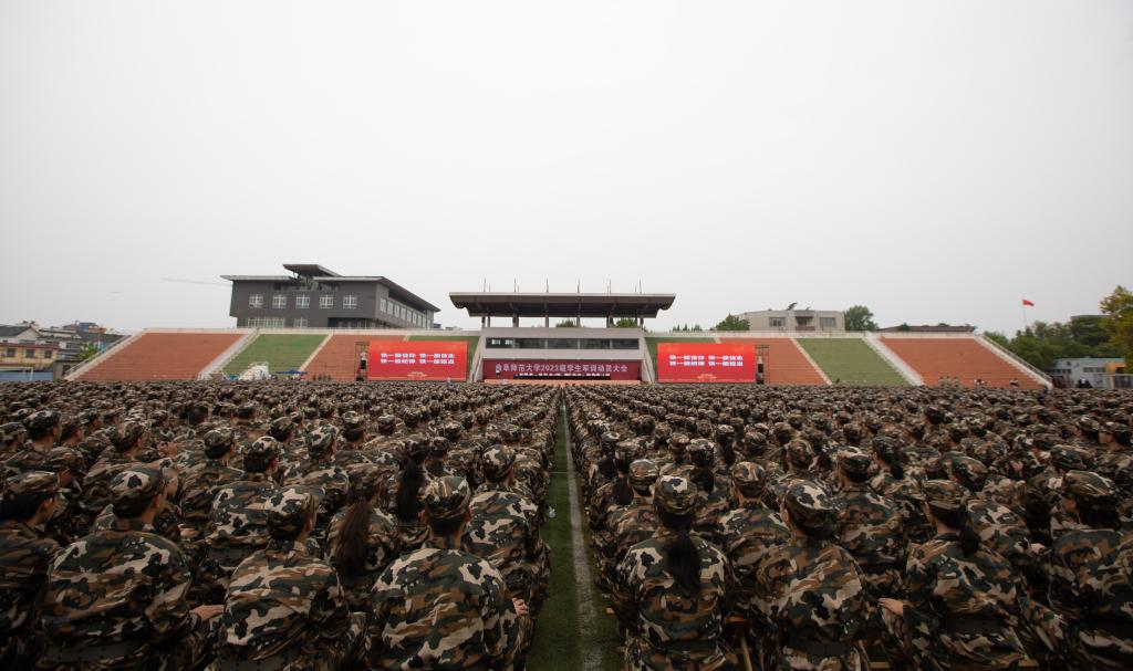 卢国强、胡凡刚向全体2023级新生表示欢迎并提出殷切希望。学校领导指出,军训不仅是落实《国防教育法》《兵役法》的具体表现,也是我校人才培养工作的重要内容,希望同学们珍惜军训的历练机会,增强爱国情感、培养集体精神、磨炼坚强意志、养成良好习惯,希望同学们在训练过程中积极表现、互助交流,能够展示个人风采、收获真挚友谊、适应大学生活、体悟成长喜悦。学校领导表示,期盼全体新生圆满完成军训任务,在未来四年的大学生活里,认真学习、探索发现、积极向上,早日实现人生理想。