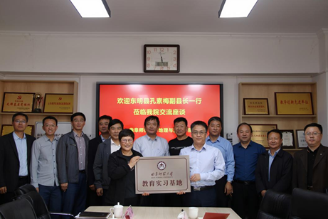 地理与旅游学院讯 10月8日上午,东明县副县长孔素梅、东明县教体局局长王海峰、东明一中校长张洪洲、东明一中副校长张景永、东明一中校长助理罗继军一行到曲阜师大访问交流。曲阜师大党委常委、副校长胡凡刚出席交流座谈活动。