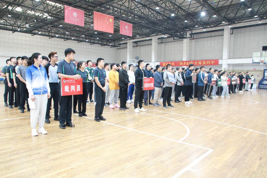 比赛裁判长、体育科学学院教师许凤英代表全体裁判员宣誓,文学院教师田广文代表全体运动员发言,学校工会主席廖志强宣布2023年米兰网教工篮球赛正式开始。