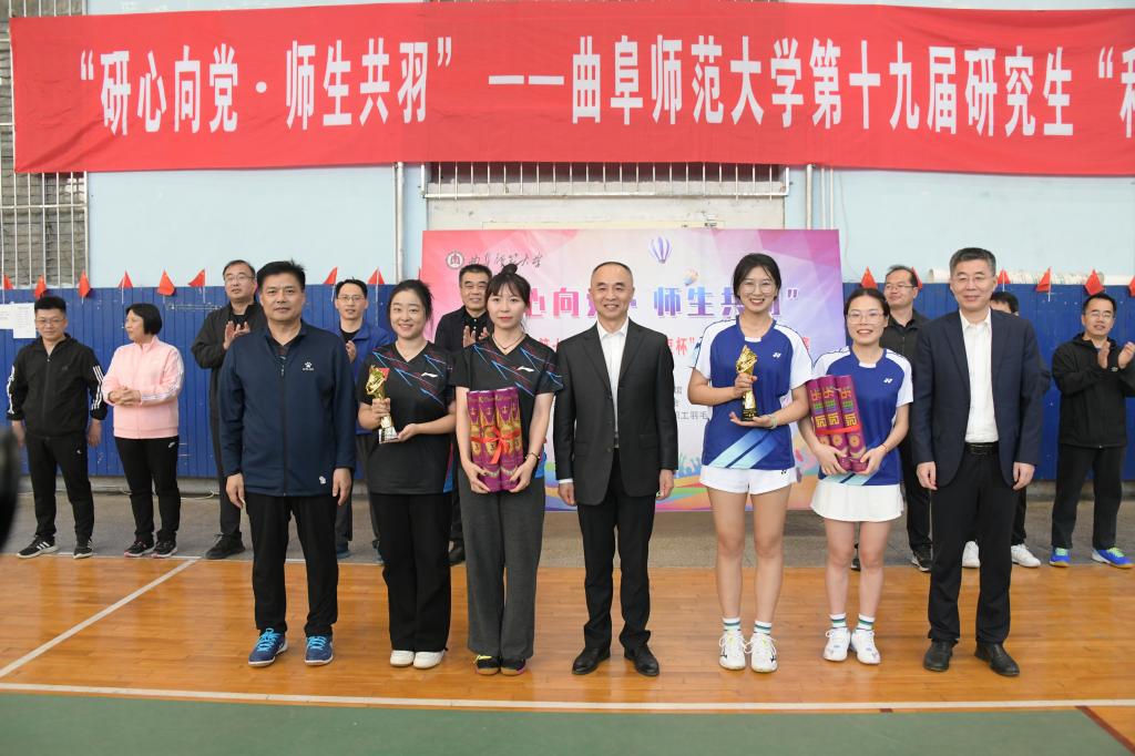 本次比赛由研究生处主办,体育科学学院、公共体育教学部和教职工羽毛球协会协办,共计27支队伍、374名师生参赛。比赛以师生联谊的混合团体赛形式开展,经过激烈角逐,体育科学学院、化学与化工学院、传媒学院、地理与旅游学院荣获一等奖,统计与数据科学学院、数学科学学院、管理学院、音乐学院荣获得二等奖,生命科学学院、心理学院、外国语学院、物理工程学院、美术学院、计算机学院、工学院、马克思主义学院荣获三等奖。