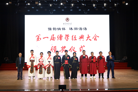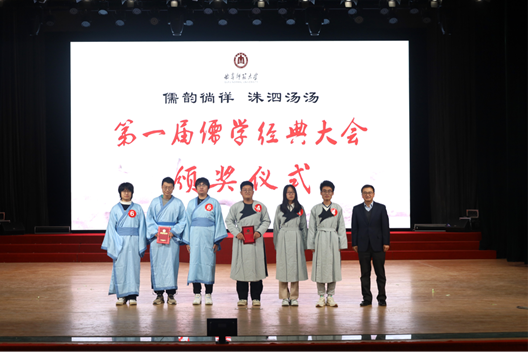 比赛期间,历史文化学院大学生传统礼仪研修中心和洙泗学社为大家带来了礼仪之邦舞蹈、儒学经典朗诵、孔子讲学情景剧以及十二花神汉服走秀节目。本次大赛以丰富多彩的形式对话经典,展现了儒学经典文化的魅力。