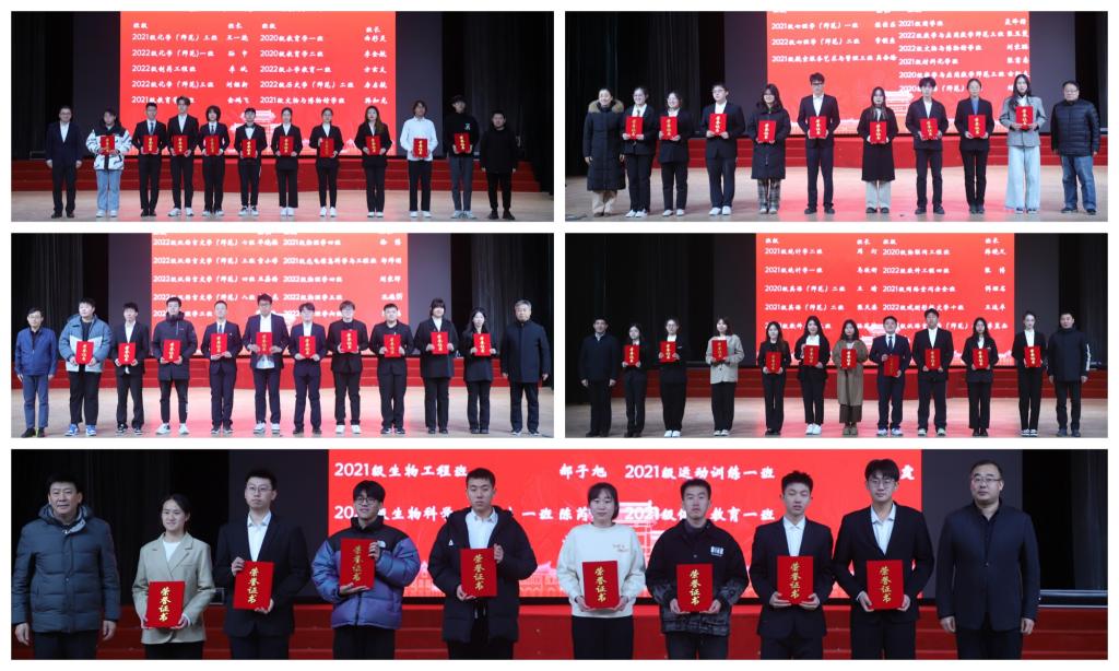 卢国强、胡凡刚为十佳班级颁奖,并发表讲话。学生工作处、校团委领导班子和各学院党委副书记为百优班级颁奖。