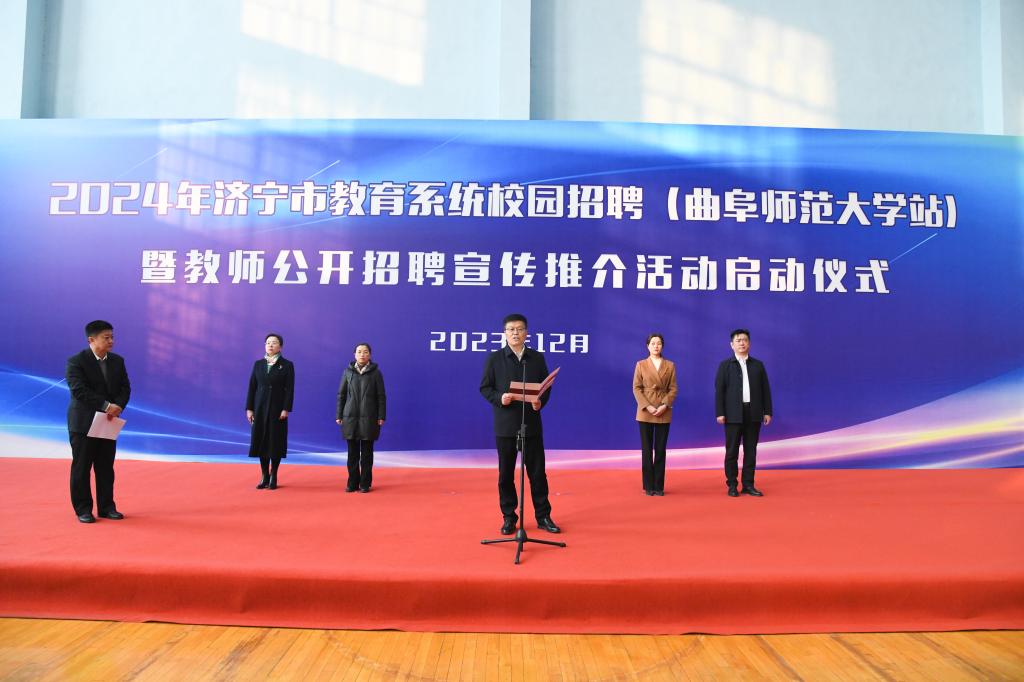 济宁市委教育工委常务副书记,市教育局党组书记、局长王洪正在主持仪式中表示,济宁市创新招聘方式,通过实施“优才计划”“校园招聘”“名校人才直通车”等系列人才招引活动,强化“人岗匹配”,探索采取“先面试、后笔试”的形式,科学运用面谈、面试、专业技能测试、答辩等形式,将最优质资源向青年人才敞开,吸引更多青年人才到教学一线任教,进一步优化教师队伍年龄、学历结构。本次校园招聘会的举办,有效促了进教育人才供需对接,实现“助力高校毕业生解决就业”和“留才引凤建设高素质教师队伍”的双赢。济宁市人力资源和社会保障局副局长、党组成员张慧慧介绍了济宁市人才招引优惠政策、基础教育的工作环境、城市建设发展目标等,表达了对懂教育、会讲课、有发展潜力的优秀毕业生的迫切需求。