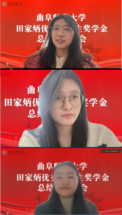 国内合作处副处长晏逾介绍了田家炳优秀师范生奖学金的基本设置和三年来的获奖情况。生命科学学院2017级学生窦桐桐、化学与化工学院2018级学生王欣悦、地理与旅游学院2019级学生李翼展作为获奖学生代表发言。她们分享了获奖感悟以及工作后取得的优秀成绩,表示将弘扬田家炳先生的伟大教育精神,传承中华民族的教育智慧和优秀文化,提高教育认知,发挥精神引领,落实具体行动,努力成为向上、向阳、向善的新时代良师。