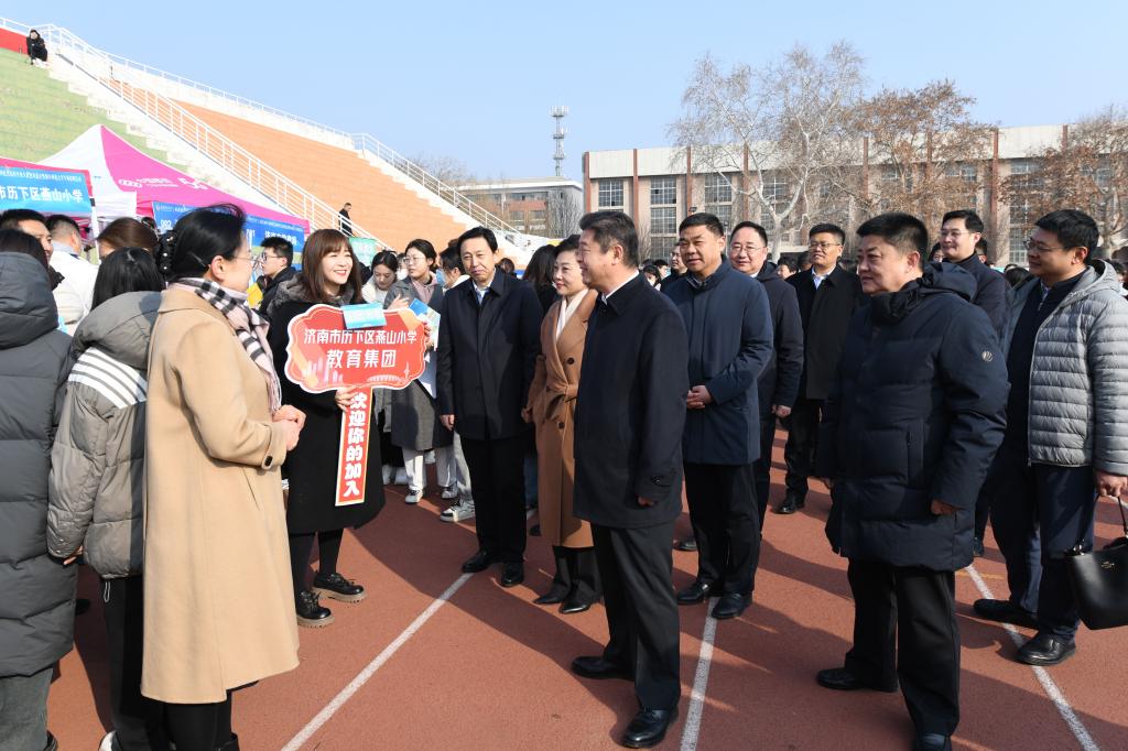 启动仪式结束后,与会领导深入招聘现场调研指导,听取了相关教体局负责人的汇报,和部分用人单位、求职学子进行交流,询问了岗位设置、招聘进度、求职状态等情况。