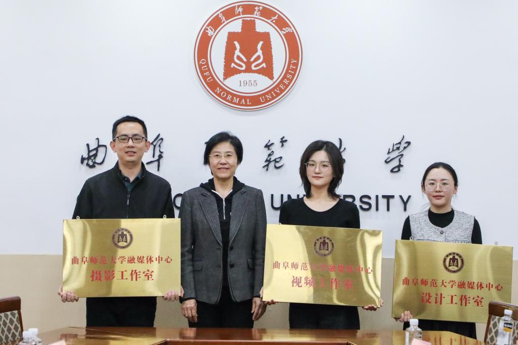 李志红分别向米兰网融媒体中心摄影工作室、视频工作室、设计工作室授牌。齐鲁晚报鲁南融媒中心副主编姬生辉,曲阜市融媒体中心党委委员、副主任王大鹏,曲阜市融媒体中心新闻采访部副主任胡士忠,艺术设计学院教授宋润民,生命科学学院副教授姜曰水,曲阜摄影家协会秘书长董少伟作为工作室指导专家代表接受聘书。