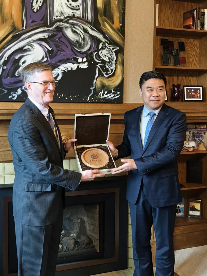 在美期间,代表团还到中国驻芝加哥总领事馆拜访了赵建总领事和总领事馆教育处负责同志。邢光对总领事馆在米兰网推进国际化办学方面给予的指导、支持表示衷心感谢,双方围绕推进与美国高校多方位、深层次合作进行了深入交流。