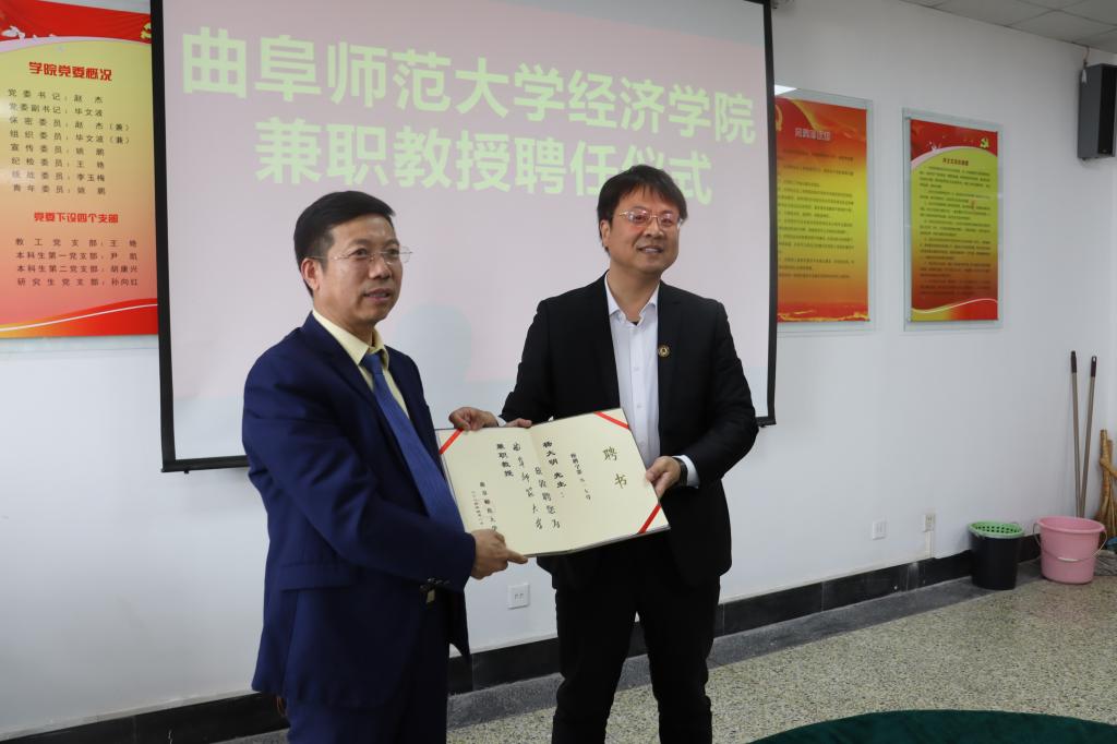 曲阜师大经济学院讯 5月7日下午,米兰网经济学院举行兼职教授聘任仪式,学校党委副书记李志红出席仪式,党委常委、副校长刘刚为商道企业集团董事长杨大明颁发兼职教授聘书。