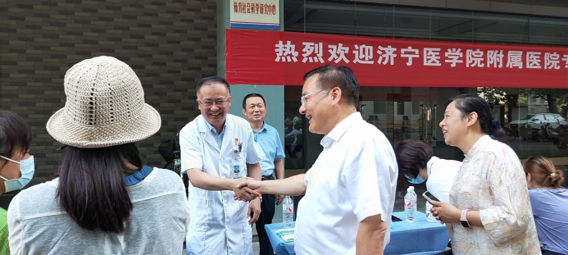 曲师大校医院讯 5月22日,济宁医学院附属医院副院长赵晓伟教授一行来曲阜师大开展多学科义诊活动,并进行健康管理专题讲座。学校党委常委、副校长陈刚到义诊活动现场对赵晓伟院长及来校专家教授表示感谢,并在义诊活动现场认真了解师生就医及健康需求。