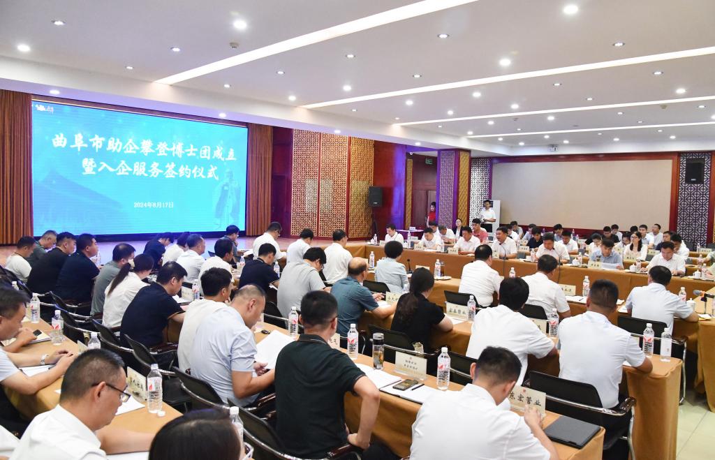 邢光对启动仪式的举行表示祝贺。邢光表示,曲阜师大自建校伊始就注重实学传统,积极服务区域经济社会发展,近年来学校党委更加注重服务社会职能,积极打造校地融合发展的“双城模式”,引导科研人员深入经济和社会发展一线主动寻找课题,在诸多领域开展了较为广泛的科技合作和成果转化工作。在新一轮改革大背景下,学校党委将“协同攻坚抓有组织科研,提升学校科创水平和区域支撑能力”作为下一步重点工作之一着力推进,深入贯彻领会二十届三中全会关于深化科技体制改革的有关要求,从国家和地方急迫需要和长远需求出发,树立“服务企业就是服务国家”的理念,狠抓基础研究、应用研究和成果转化,自觉履行高水平科技自立自强的使命担当。曲阜市委举办此次活动,与学校工作部署不谋而合。学校将从体制机制上、从制度上予以全力支持,赋予签约博士服务企业的最大自主权。希望签约博士把科研方向与企业需求紧密衔接,通过与企业的双向发力,着力提升校企协同攻关能力,实现学校和企业的“双向奔赴”,实现更好高质量发展。