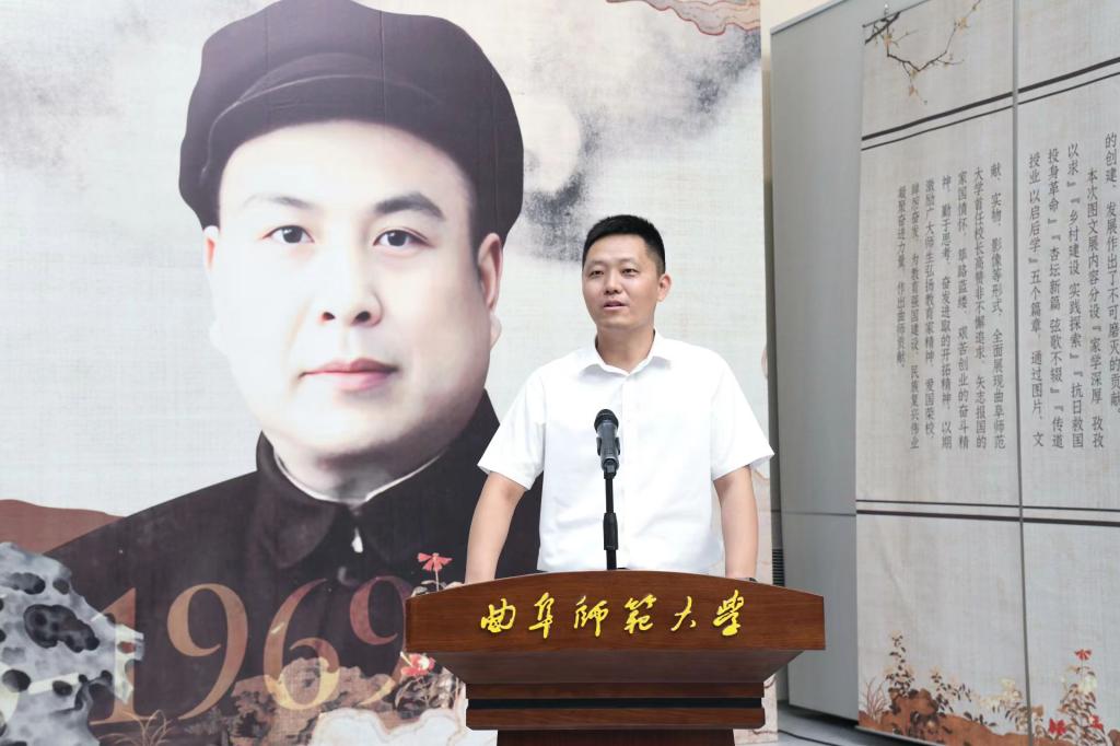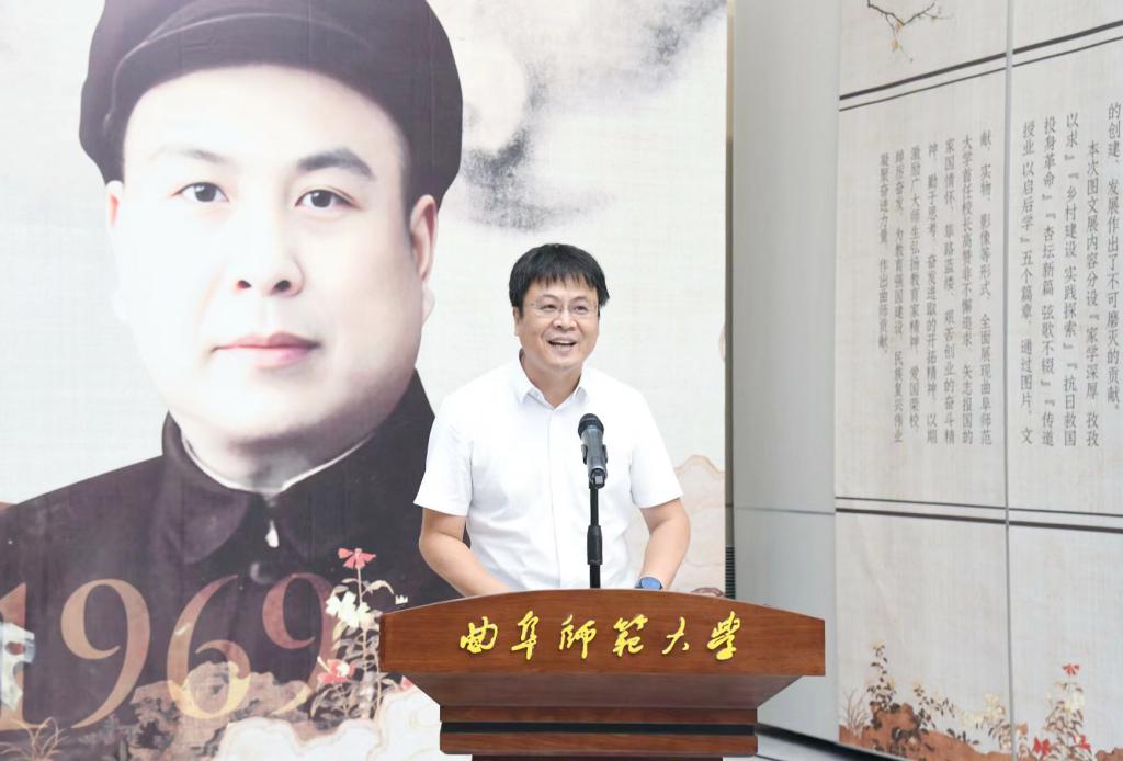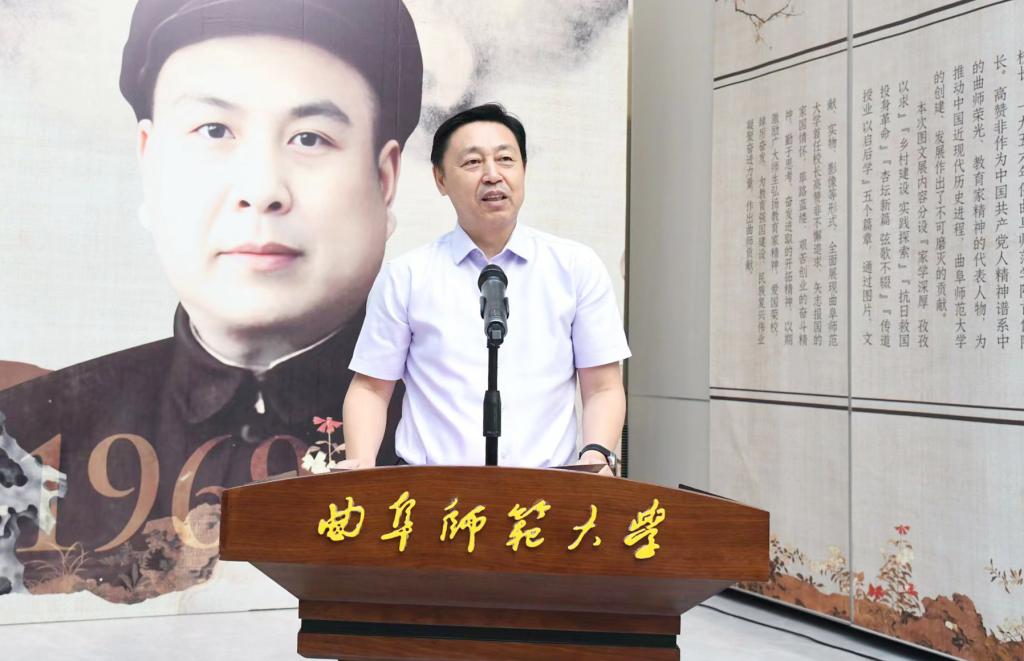 张洪海在致辞中对各位领导嘉宾的到来表示欢迎和感谢,他表示,本次展览是学校庆祝中华人民共和国成立75周年系列活动,同时也是学校发挥特色优势,弘扬教育家精神的重要举措,高赞非先生作为学校的创校校长,集革命家和教育家于一身,以为国弘文的战略眼光和躬耕教坛的务实态度,用实际行动书写了忠诚、践行了担当,为孔子家乡大学注入了最浓厚的家国情怀底色,留下了弥足珍贵的精神财富。