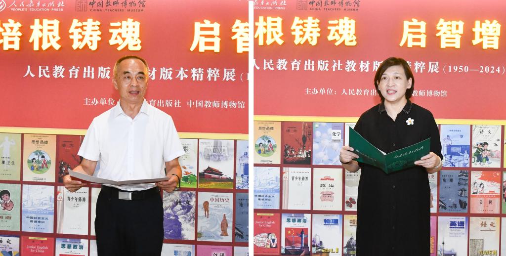 展览作为教师博物馆“课本馆”的核心内容,集中展示了70多年来出版的部分人教版教材,百余名师生代表参观展览,直观体验了“尺寸教材,国之大者”的育人价值,感受新中国教材建设事业的伟大成就。