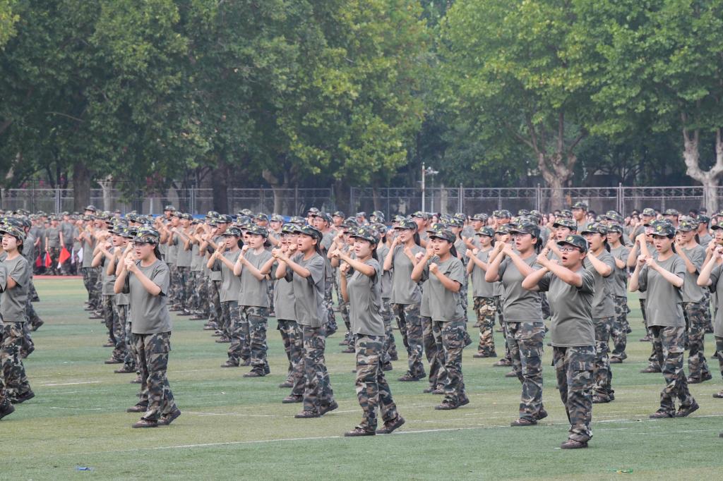 参训新生精彩的汇报表演燃爆全场。标兵方阵、齐步跑步方阵、捕俘拳/擒敌拳方阵、内务战备方阵、旗语方阵、应急棍术方阵、捕俘刀/匕首操方阵、心理健康操方阵、剑术方阵、战地急救方阵、战术方阵分别亮相。1600人组成的标兵方阵用手中红白双色卡,摆出“1921”“开天辟地”“河山统一”“改革开放”“2024”“75”等字样和井冈山、天安门、复兴号等图案,令人震撼。由女生组成的齐步方阵和男生组成的跑步方阵共同表演了队列动作,在教官的口令下,他们目光如炬,铿锵有力的脚步声响彻全场,一步一踏是他们对胜利的坚定信念。捕俘拳和擒敌拳方阵,一招一式,拳拳生风。内务战备方阵,汇报了从休息到起床,然后迅速着装、整理内务和背包、准备行军的全过程,他们动作敏捷、一丝不苟,整装待发、训练有素,他们未雨绸缪、蕴势以待,厉兵秣马、藏器于身。旗语方阵手持双色旗帜迅速入场,旗是他们的武器、语是他们的指令,一起一落、一挥一舞,准确传递指令。应急棍术方阵的长棍在他们手中化身长剑,直指苍穹,洪亮的口号回荡在整个训练场地。捕俘刀、匕首操方队手握短刀,一刀一式,一出一收,干脆利落,深刻诠释巾帼不让须眉。心理健康操方阵舞姿轻快活泼,微风将活力的音符吹到每个人耳边,快乐和激情填满场地每个角落。剑术方阵挥剑如流星划破夜空,技巧娴熟,剑威猛厉,迅捷精准。战地急救方阵行动专业、动作娴熟,止血、包扎、急救,救死扶伤,及时到位。军训教官和军训新生带来的战术表演,将汇演推向高潮。作为道具和背景的阵阵浓烟和枪炮声缭绕操场,机智的战术、激烈的格斗、迅速的伤员救护、密切的配合与相互掩护,引来观众阵阵掌声和喝彩。汇演最后,胜利的红旗久久挥舞,现场气氛热烈,掌声欢呼声不断,全体新生的爱国情怀持续激荡。线上曲园学工微信号同步直播,1.8万人在线观看,点赞超过10万、好评如潮。