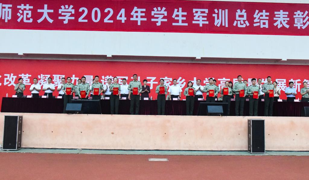 刘刚、陈刚宣读了2024年军训优秀标兵、优秀教官、优秀连队、演讲比赛获奖单位、拔河比赛获奖单位、歌咏比赛获奖单位、内务卫生先进单位、优秀指导员和军训工作优秀单位名单。在主席台就坐的领导为获表彰的集体和个人颁发了证书和奖牌。