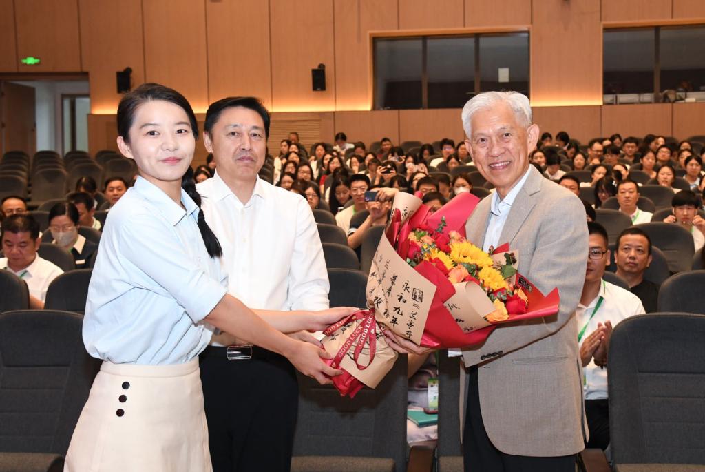 活动开始前,学校师范生代表向田庆先敬送鲜花,代表全校学子向田家炳基金会表达最崇高敬意和感恩之情。