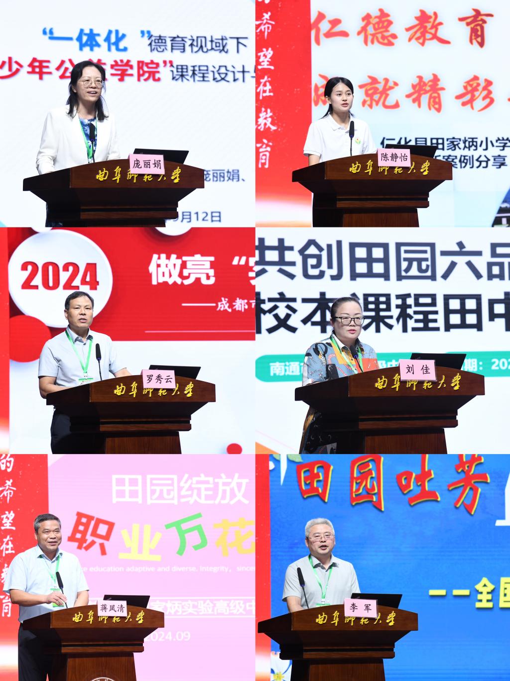 在学校德育创新实践论坛环节,六所获得“德育创新卓越奖”的学校进行德育创新实践报告,第一组由齐军教授主持、徐瑞教授点评,第二组由刘亭亭副教授主持、齐军教授点评。上海田家炳中学作题为“一体化德育视域下的‘青少年公益学院’系列实践活动设计与实施”的汇报;广东省仁化县田家炳小学围绕“仁德教育——成就精彩人生”展开汇报;四川省成都市田家炳中学就“做亮‘实’文化,营造‘心’田园”主题作汇报。江苏省南通市田家炳初级中学作题为“共创田园六品德育校本课程的田中实践”的汇报;江苏省苏州市田家炳实验高级中学作题为“田园绽放“职业万花筒”的汇报;江苏省常州市田家炳初级中学围绕“田园吐芳——敦品少年劳育习养行动”展开汇报。