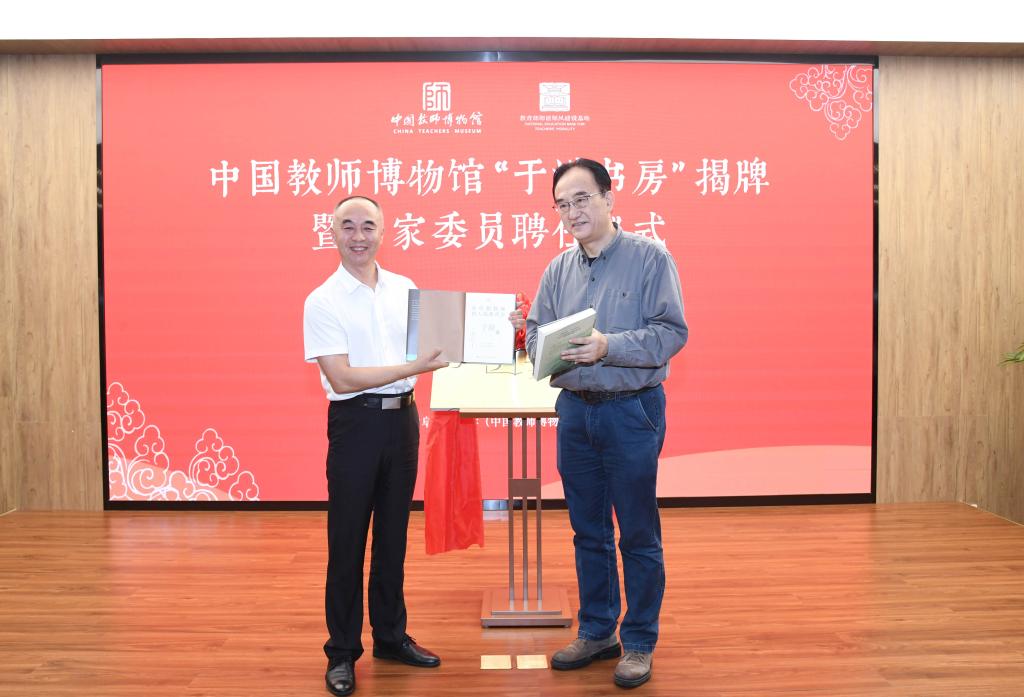 王荣华、张洪海共同为“于漪书房”揭牌,张洪海为王荣华颁发教师博物馆专家委员聘书。