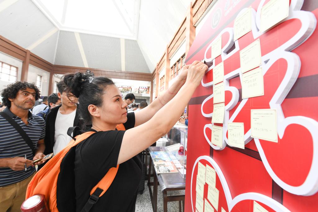 “Love you so much,China!”来自埃及开罗的友人Omar现场写下庆祝新中国成立75周年的诚挚祝福。他说,来到中国十个月的时间里,越来越多地体验到这里的文化悠久、科技发展、社会安定以及人民的热情友好。今天看到曲阜师大志愿者们呈现的美妙文化元素,让自己想要去更多地了解中华文化。