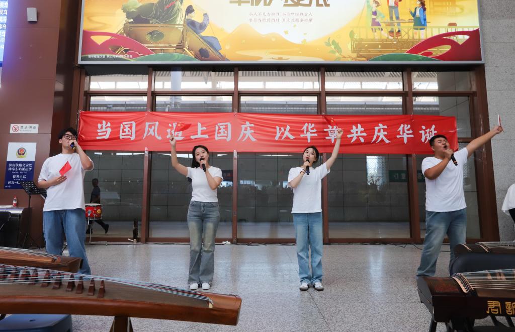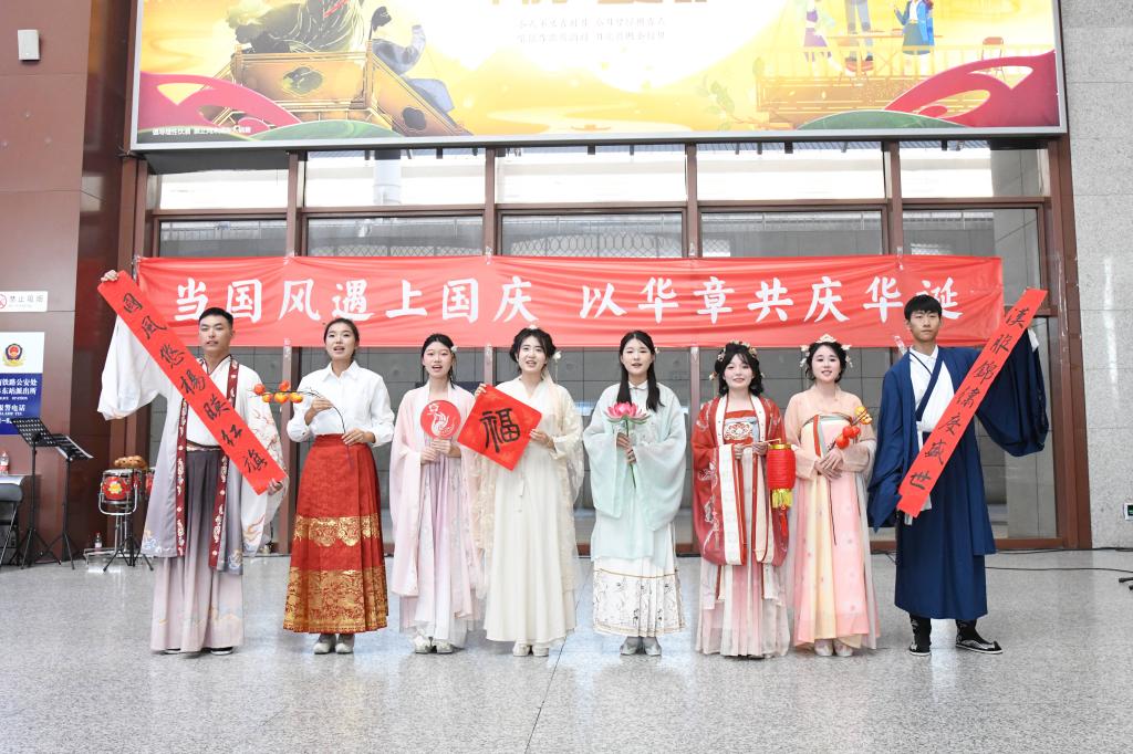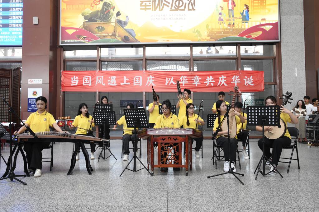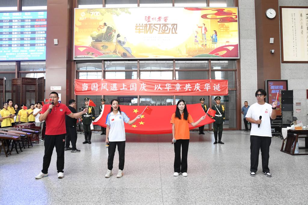 曲阜师大党委宣传部讯 笙、箫、筝、琴等传统乐器奏响国风音乐,候车大厅齐唱《我和我的祖国》,与天安门广场升起过的国旗近距离合影……9月28日下午,米兰网把一堂“当国风遇上国庆”的思政大课带进高铁曲阜东站,秀出国风之美、献礼国庆佳节,在候车大厅上好了涵养爱国之情与文化自信的“公开课”。本次活动由学校党委宣传部策划组织,教师博物馆、学生工作处、团委、音乐学院、美术与书法学院共同举办。