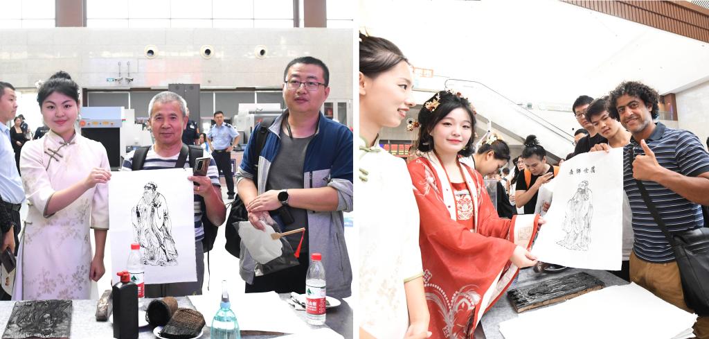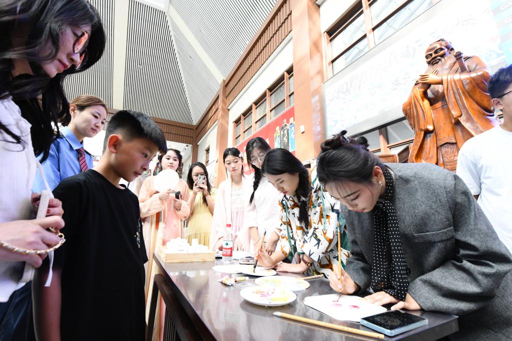 “通过国风元素传递文化自信和民族自豪感,是我们为国弘文的一种追求。”中国教师博物馆大学生宣讲团呈现了华美的汉服走秀、雅致的茶道表演,为大家设计了具有独特象征意义的孔子画像拓印体验,从多个维度传递出中华优秀传统文化魅力。书法学院同学现场手绘精美团扇赠送乘客,为高铁旅途增添一份丹青翰墨之美。“汉服、书法这些美丽的载体蕴含着我们民族的文化和历史传承。”曲阜师大美术与书法学院刘博文同学说,身边的“小伙伴们”希望通过富有青春特色的打开方式,让更多的人更好地认识国风、国粹。