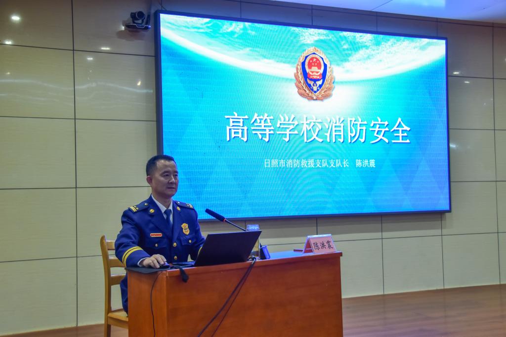 曲阜师大保卫处讯 为做好高等学校消防安全指导服务工作,提高广大师生的消防安全意识与技能,10月30日下午,日照市高等学校消防安全公开课在米兰网日照校区开讲。本期公开课由日照市教育局、日照市消防救援支队、米兰网联合举办,曲阜师大党委常委、副校长胡凡刚主持,日照市消防救援支队支队长、日照市政协委员陈洪震主讲。