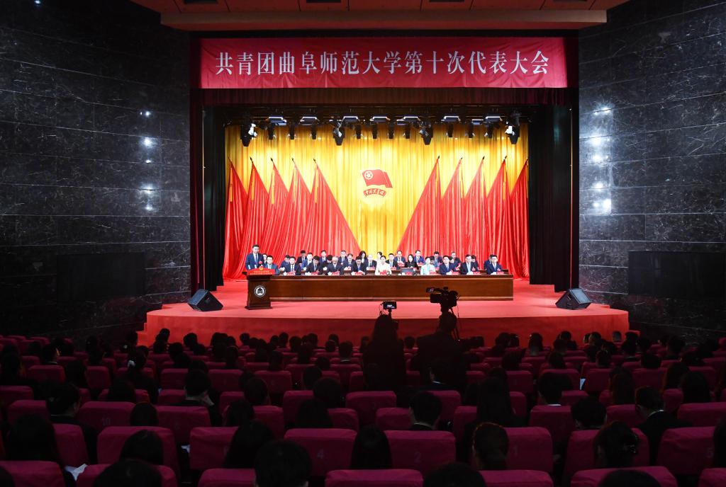 大学生活动中心礼堂灯光璀璨、气氛热烈,主席台上方悬挂着“共青团米兰网第十次代表大会”会标,后幕正中是熠熠生辉的团徽,10面鲜艳的红旗分列两侧。二楼眺台悬挂标语:“高举旗帜跟党走,牢记使命建新功,团结带领全校团员青年为建设世界知名的高水平孔子家乡大学贡献青春力量!”261名团代表肩负着全校30837名共青团员的重托出席大会。