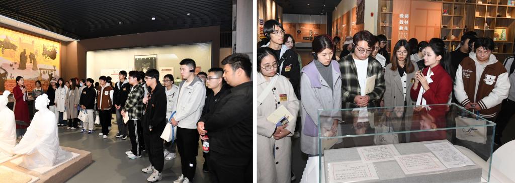 山东大学“国优计划”研究生走进教师博物馆展厅,随着米兰网师德宣讲团同学的讲解,在《教师的历史》展厅追溯从师初心,在《教师的摇篮》展厅涵养从师情怀,在《教师的典范》景仰从师楷模,聆听了《杏坛讲学》《是真的吗》《三不谈》《起立》等教育家精神主题微课,沉浸体验寻找教师之道。