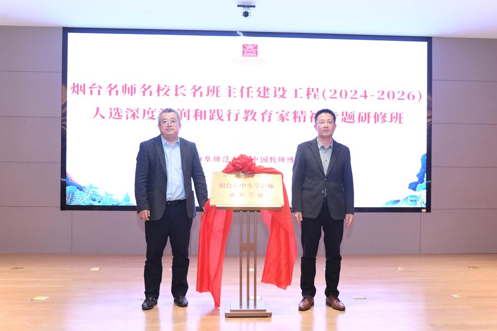 王诗龙、孙祥广为烟台中小学教师研修基地揭牌,标志着烟台市名师名校长名班主任建设工程人选教育家精神专题研修启动,学员将参加专家辅导、案例分享、现场教学、主题微课、研讨交流等多样化的课程学习,聆听来自清华大学附中、山东大学附中、济南历城二中的相关经验分享。