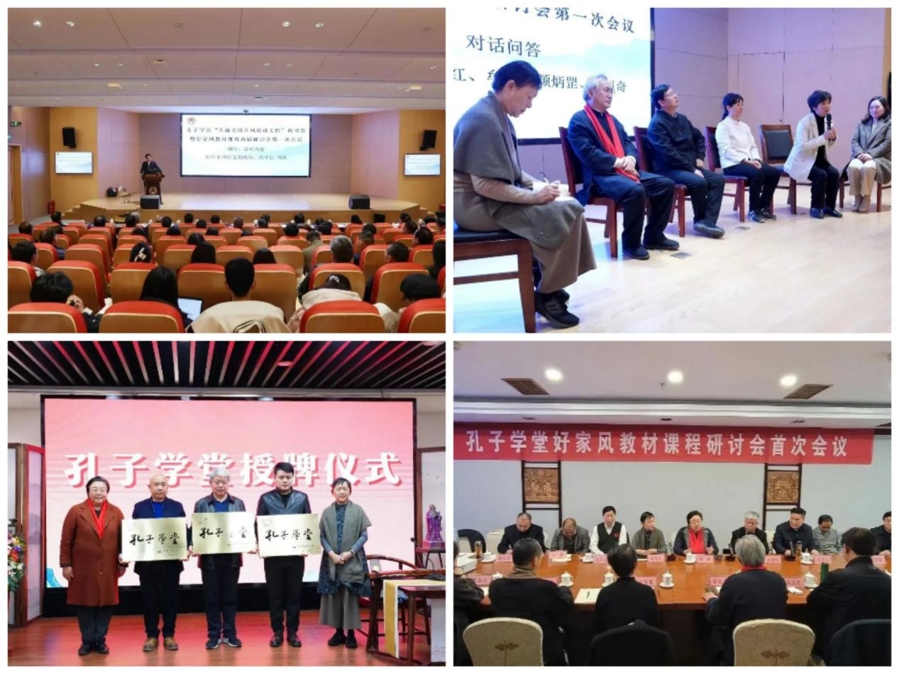 会上,乡村儒学建设实践推动者赵法生、中国孔子基金会好家风传习基金管委会主任廖晓义、北京人文研修学院国学院长蔡恒奇、中国农业大学人文与发展学院教授何慧丽、华中师范大学马克思主义学院副教授董小红、中国社会科学院学者牟坚、乡村儒学研究院院长颜炳罡等专家学者从不同角度为传习营做主题发言。在随后的孔子学堂授牌仪式上,济宁市曲阜儒家文化科技研究院等8家单位被授予孔子学堂牌匾。在孔子学堂好家风教材课程研讨会首次会议上,与会专家围绕孔子学堂好家风教材课程建设展开研讨,分享并介绍了全国社区家风指导系列认证课程体系的内容架构和实施策略。